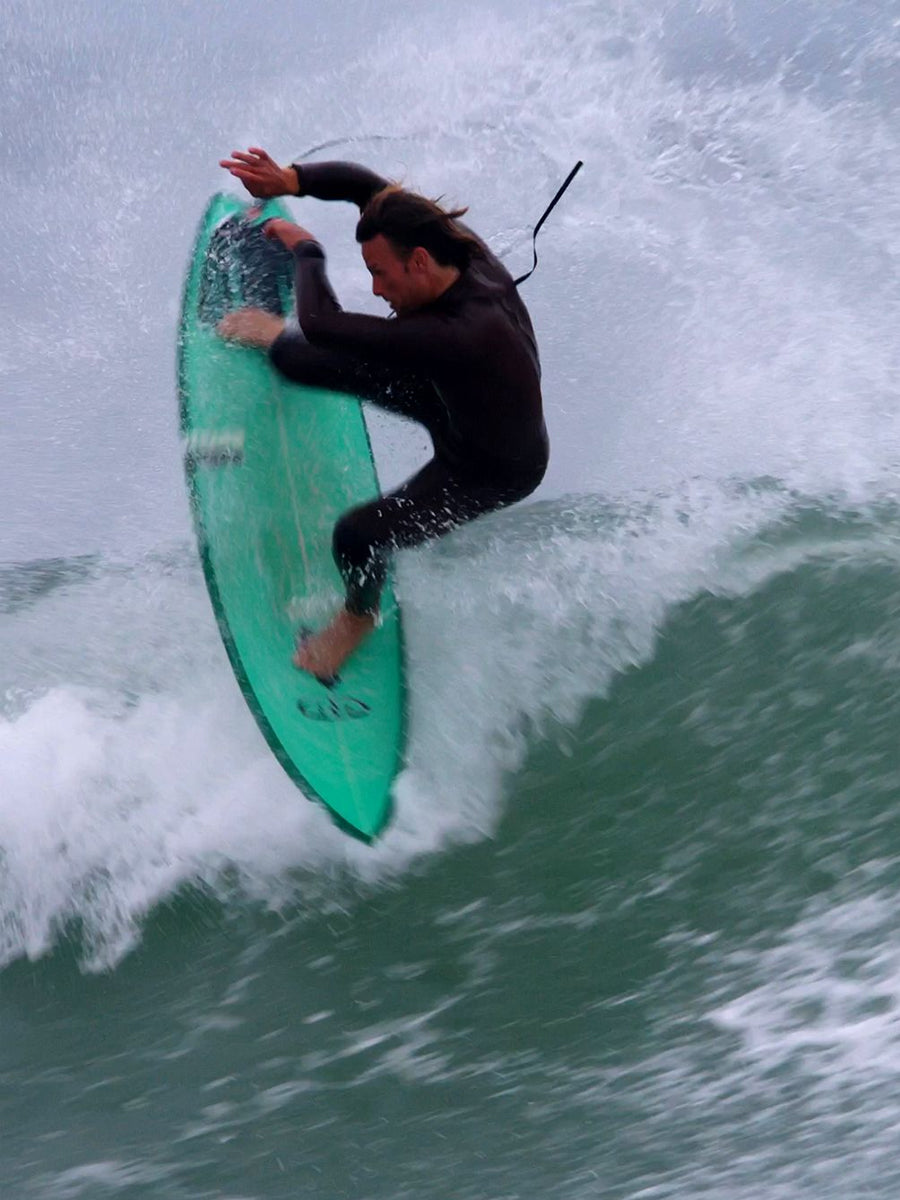 - Relaxed hip in the outline for a smoother transition off the bottom and improved flow in slightly bigger waves.