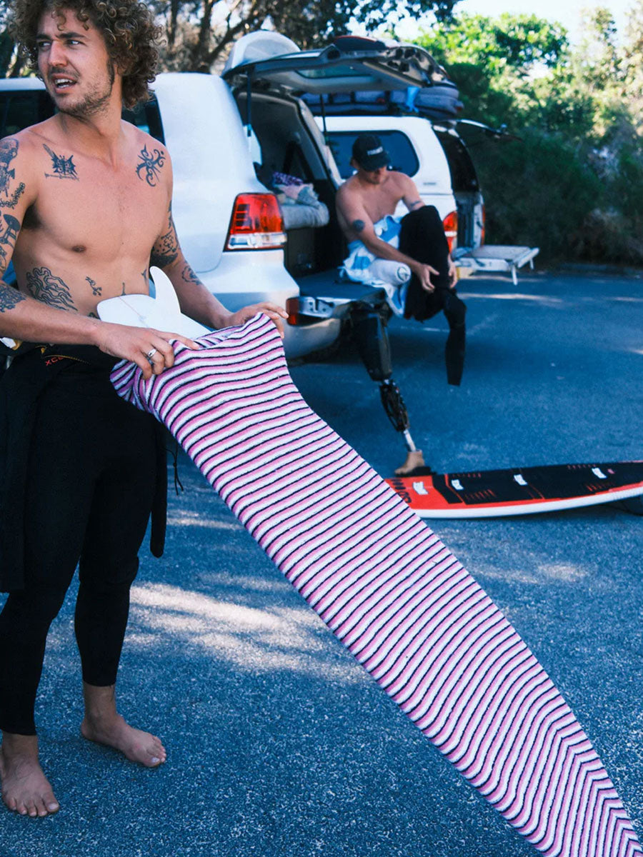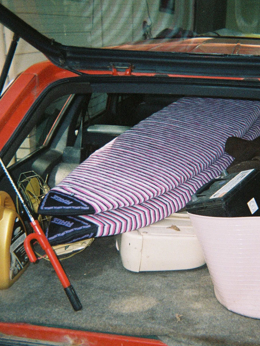 RAGE surfboard sock will keep your board safe for those trips in the car also a good idea to chuck one on your board before putting in a coffin for extra protection. Some of the crew have even doubled covered with these for single board flights. GERA