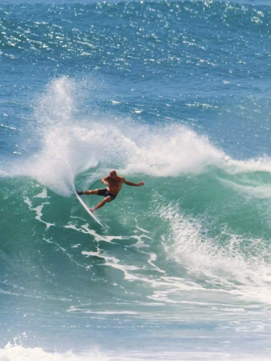 This is Kelly Slater's raked template designed to maximise hold and generate drive, and is the complementary opposite to the KS1 pivot template. Kelly prefers to ride size Large in smaller waves, and Medium in bigger waves.