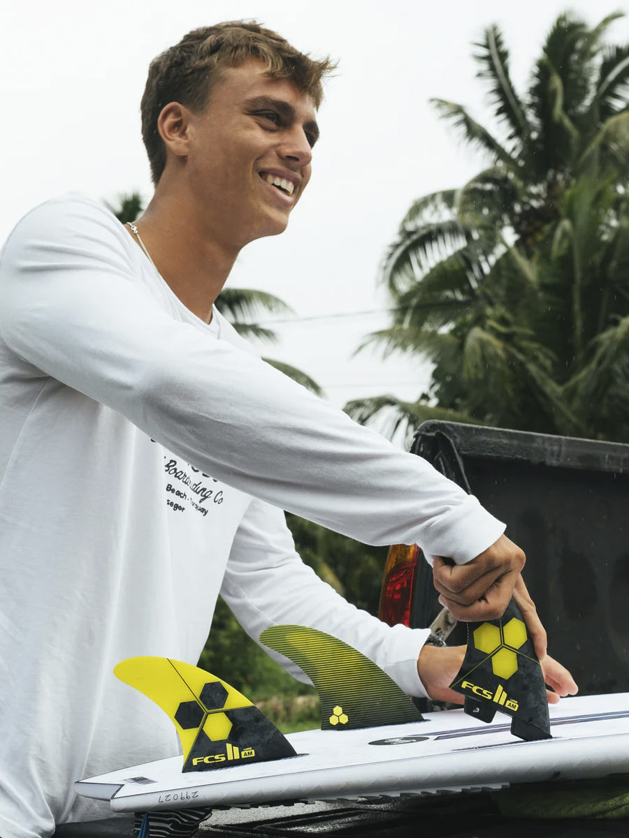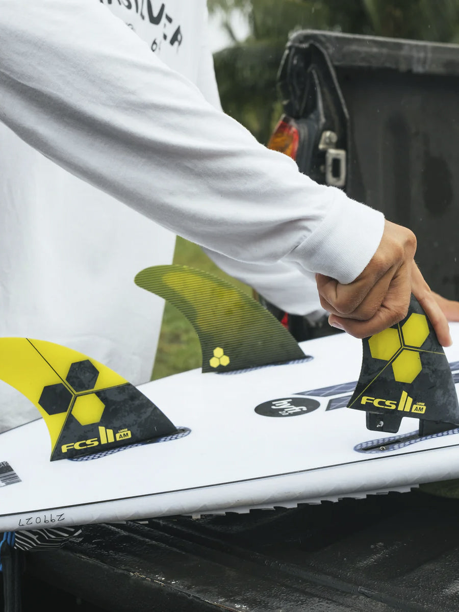 FCS II AM PC Tri Fins are raked side fins that produce exceptional speed and drive.