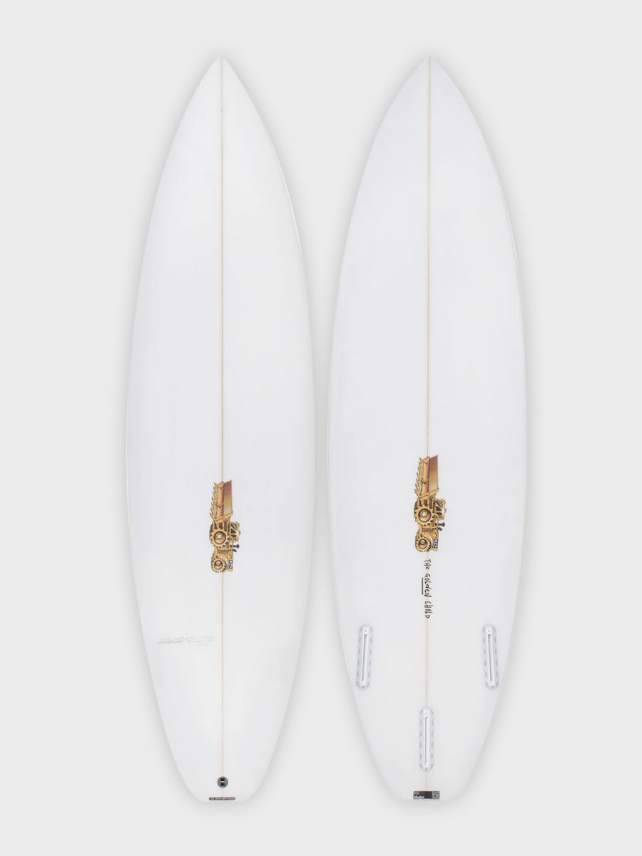 Overall, it has a flatter vee deck compared to the dome deck of our more modern good wave boards like the Schooner or FMN3. This brings you closer to the water for sensitivity, providing instant response. Golden Child also has less concave than the Monsta for extra hold, which is complemented by a narrower nose & tail outline for control in critical sections. All of these features come together to complete a model designed for rail surfing, to cut through the water like a hot knife through butter.