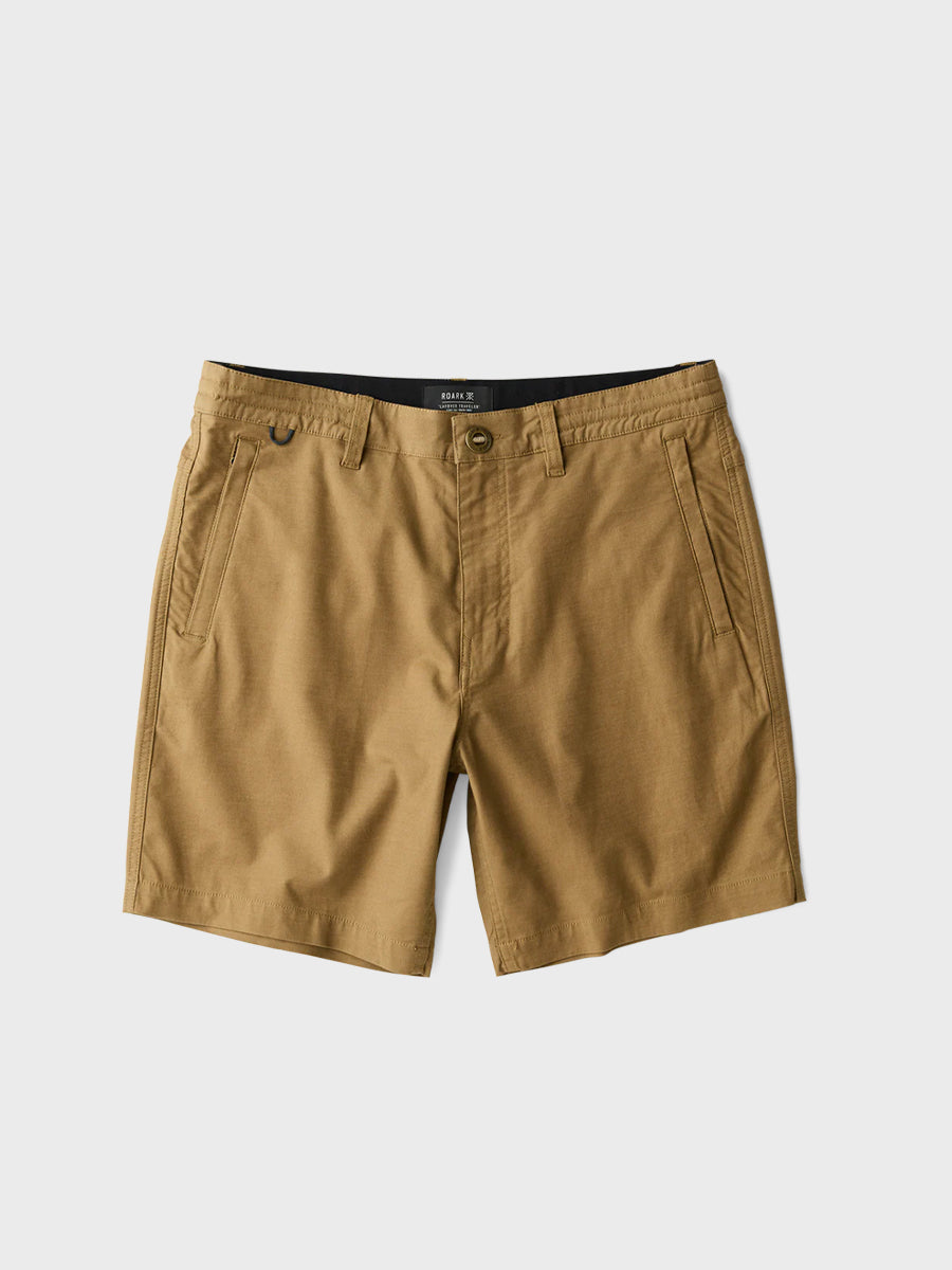 The layover is part of travel. As a brand that has circumnavigated the globe Roark embraces the journey. Inspired by the in-between they wanted to make shorts that are as comfortable waiting for your group to be called as they are on your daily commute. The biggest evolution of the Layover is here, complete with an overhauled performance fabric and belt loops. It was good before, but now it's sitting in first class. With a hybrid waistband and alpha sizing, you can customize your fit. Jump on board with the short that is ready for everything your layover has to offer.