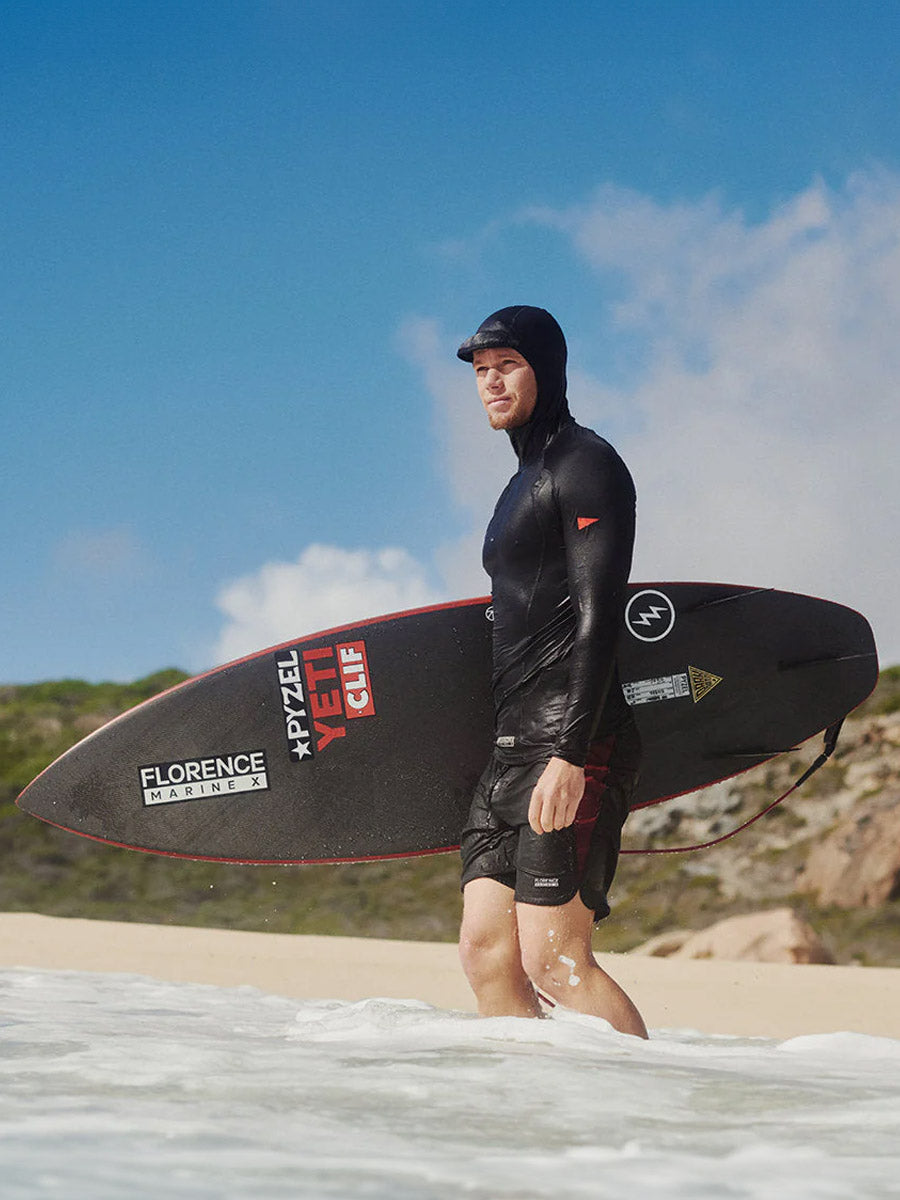 Designed with a snug, compression-like fit, this rashguard is equipped with a three-panel hood for long sessions in and on the water.