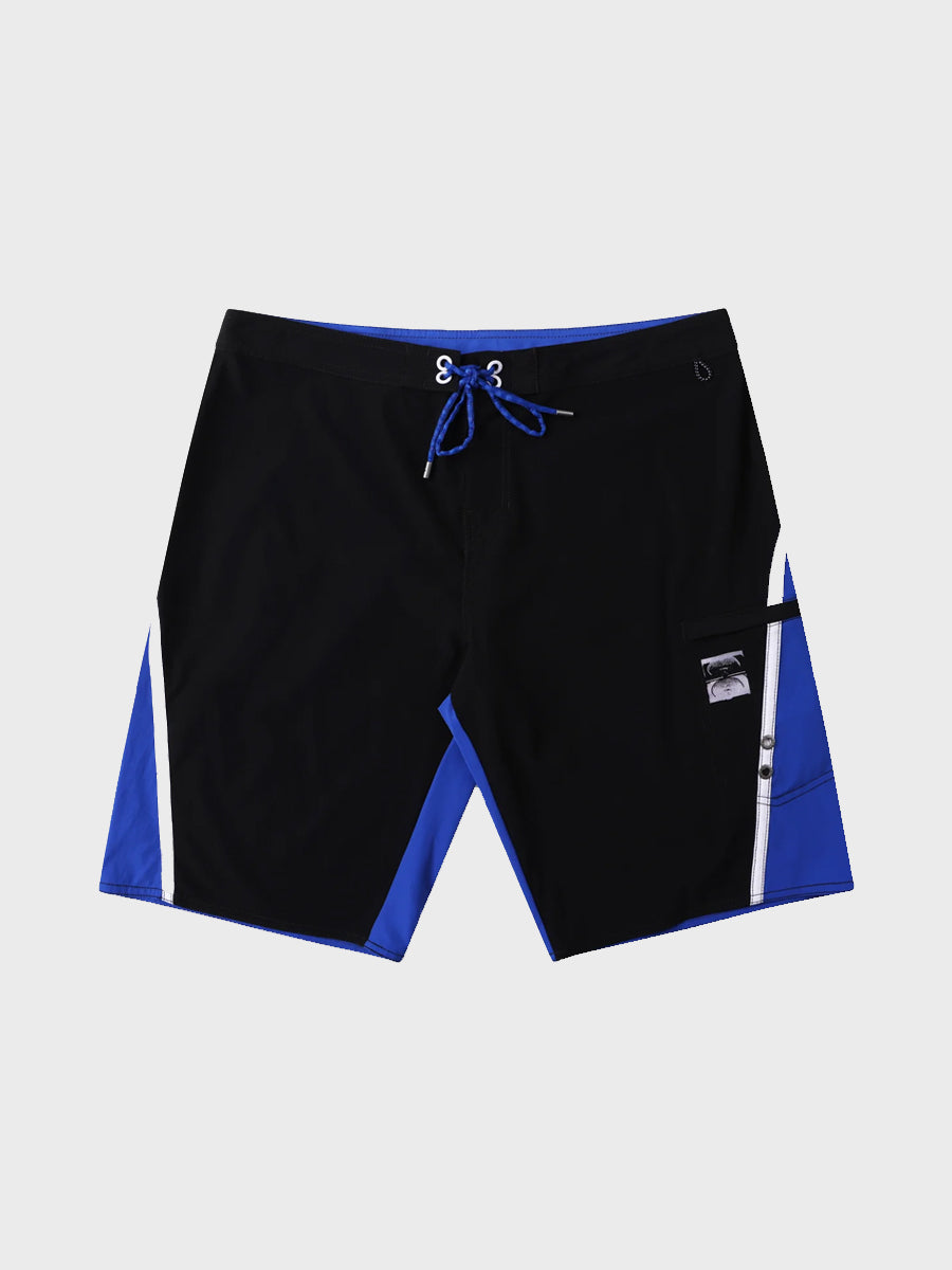 Designed in a premium polyester-spandex blend with 4 way stretch fabric and delivered in our 21" leg length fit. Featuring unique curved panel construction with taping, back applique graphic, side zip pocket, secure drawcord closure and comfortable fixed waist.