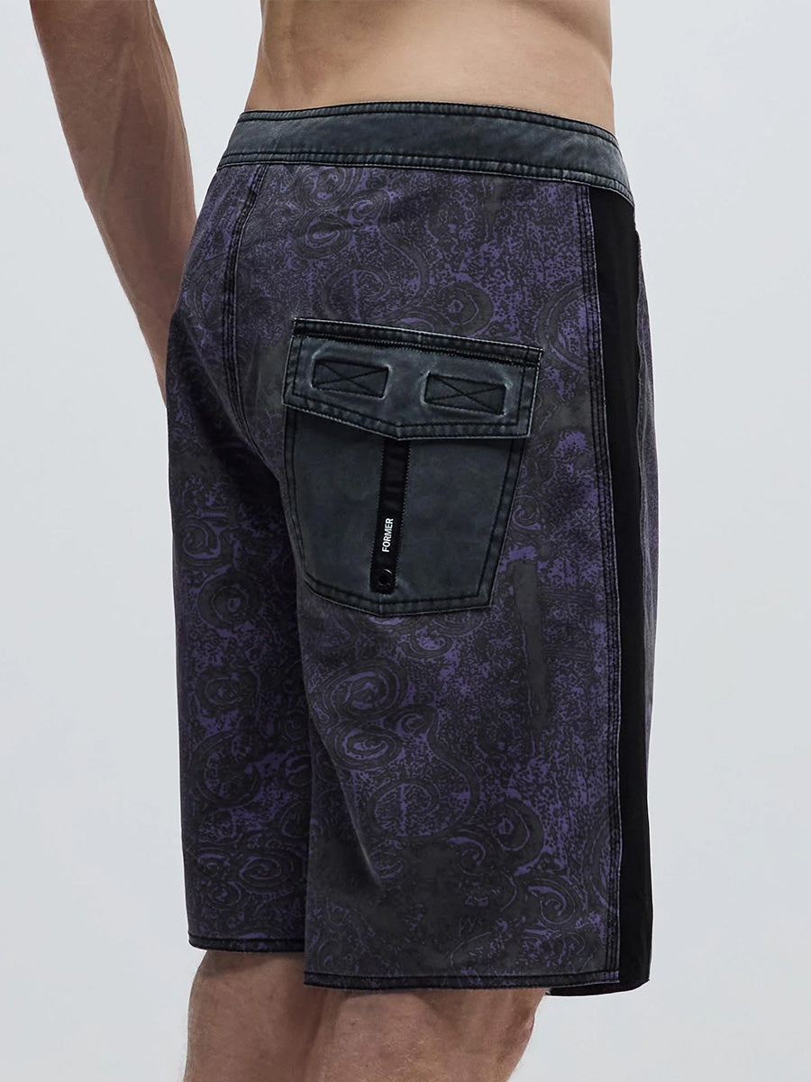 Constructed from a premium 4-way stretch fabric and delivered in our 19" leg length. Featuring an all over seasonal yardage in a pigment dye wash for a vintage looking finish, contrast ripstop side panels, secure velcro back patch pocket with FORMER eyelet, and drawcord closure.