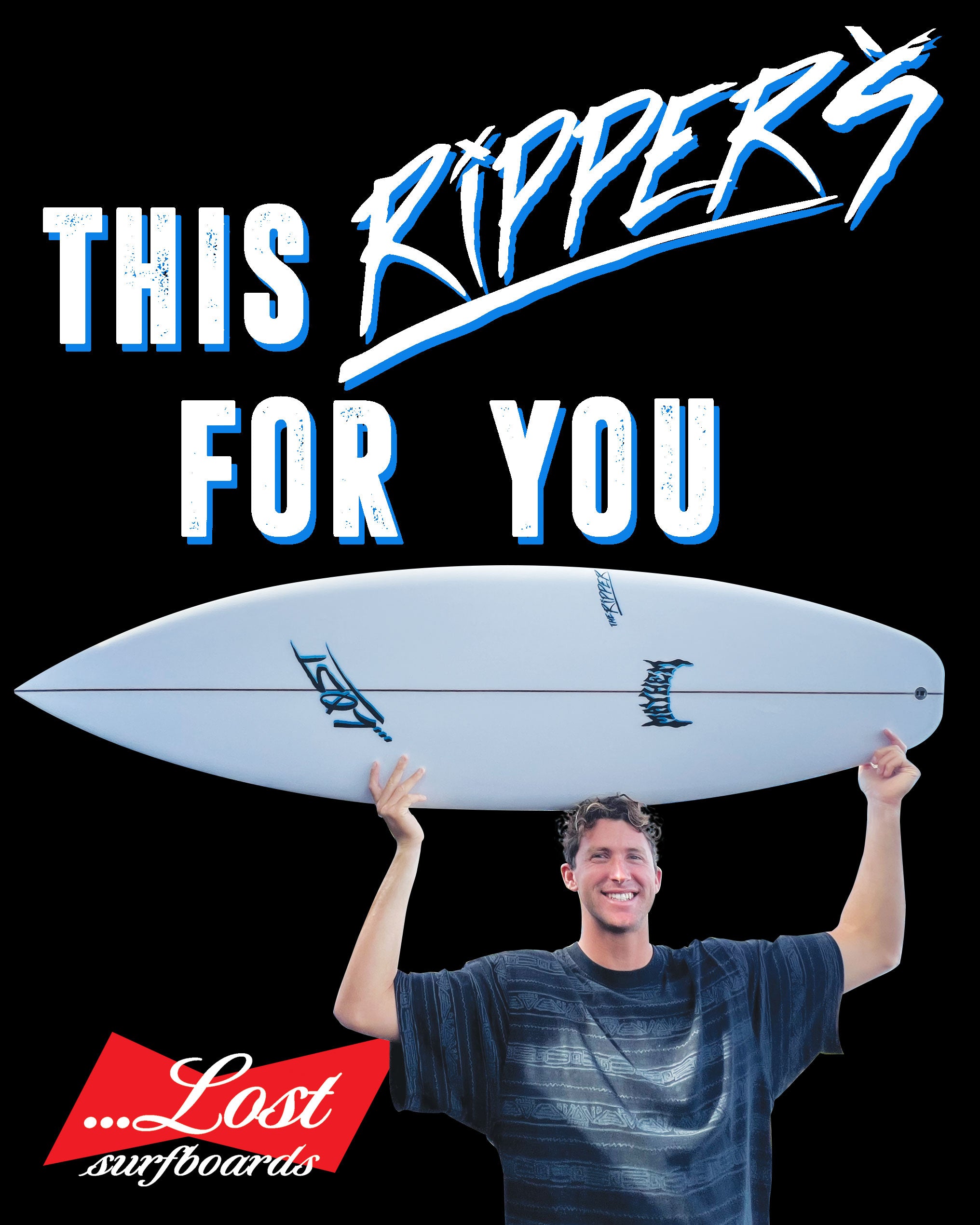 The Lost Ripper is a radically fun, small-wave slasher. A surfboard designed to violently shred everyday, average surf from 1-4ft. The Ripper was inspired by Kolohe Andino, who loved the Rad Ripper but wanted all the nostalgic 80's design elements removed, focussing on performance instead.