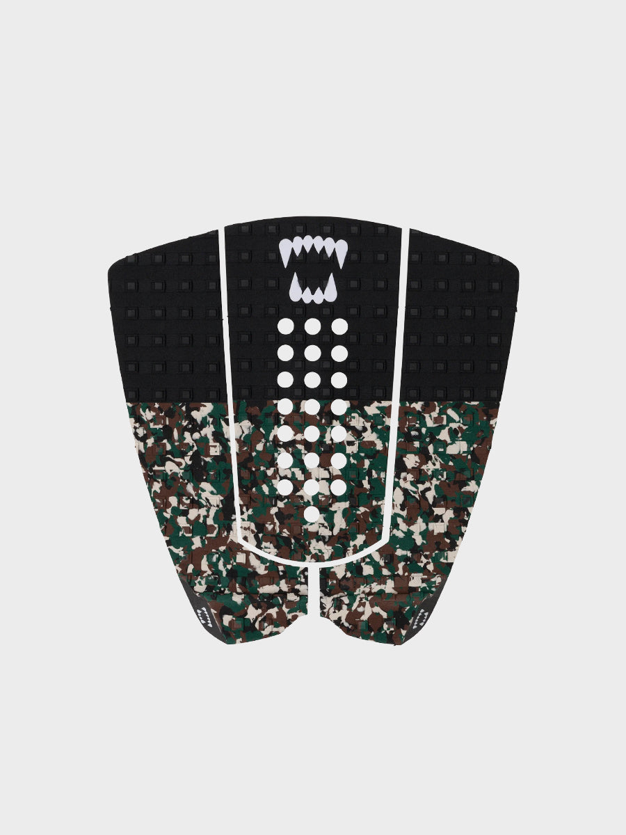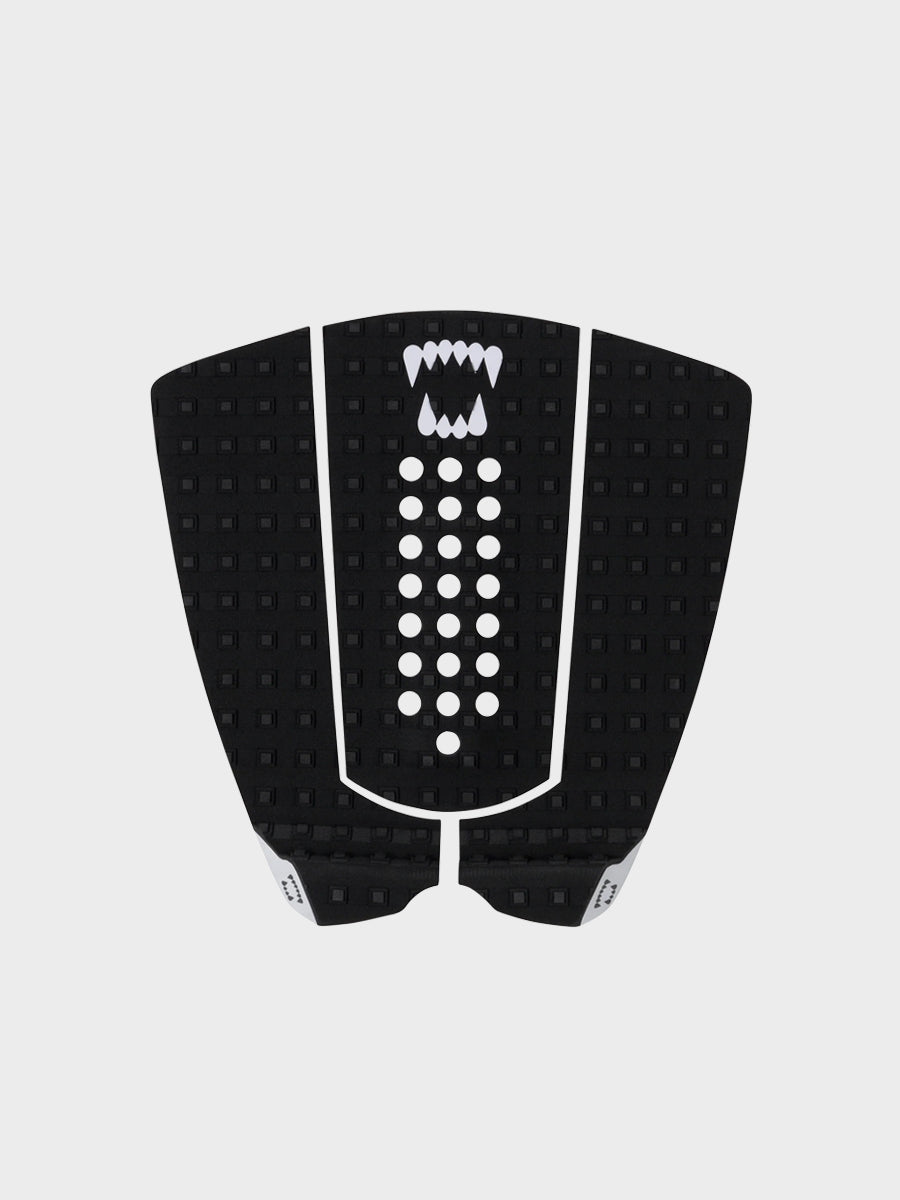 The Slayer is a 3-piece traction with a wider center arch for a more subtle curve under foot. The pulled in tail kick is designed to fit the curve of a round tail, but can also be used on narrower squash or swallow tails.