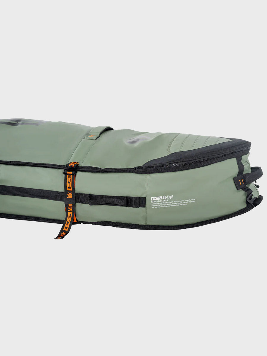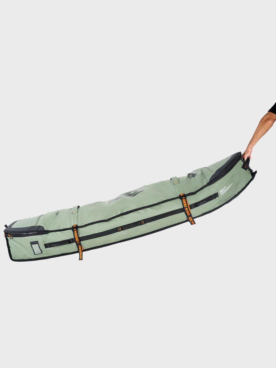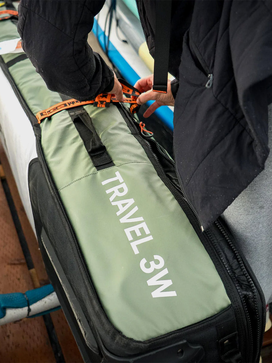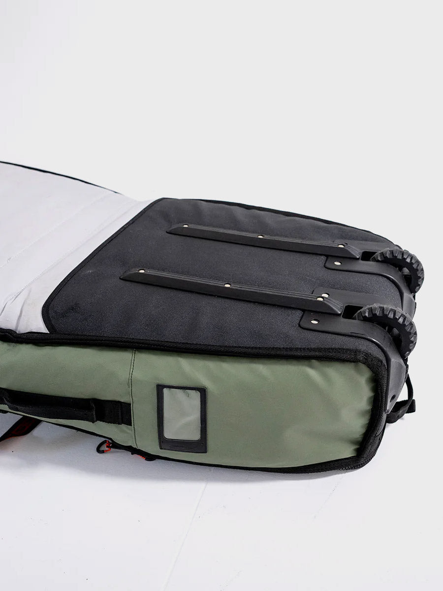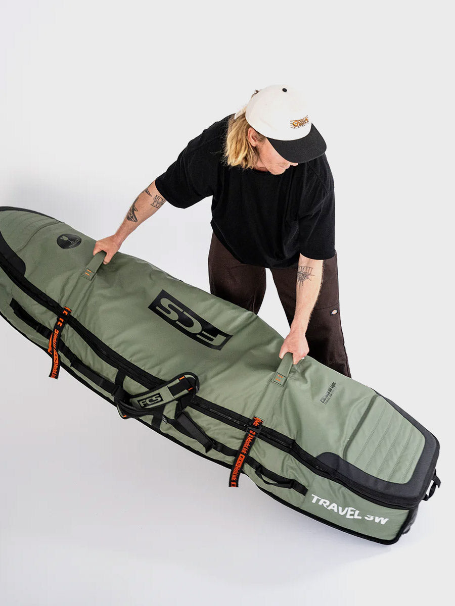 The Travel Wheelie Cover is perfect for international strike missions and surf trips to remote locations. The FCS Travel Wheelie is loaded with features to get your favourite boards safely to the destination with the convenience of built-in wheels to make transit mobility fast and efficient. Designed to withstand the rough treatment through transit, and with the unique ModuLink System to make your life easy on the road.