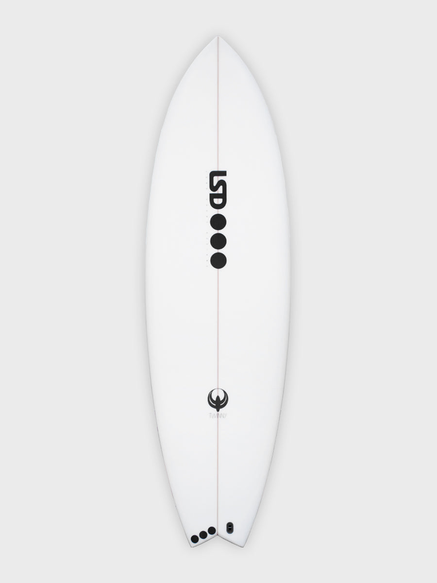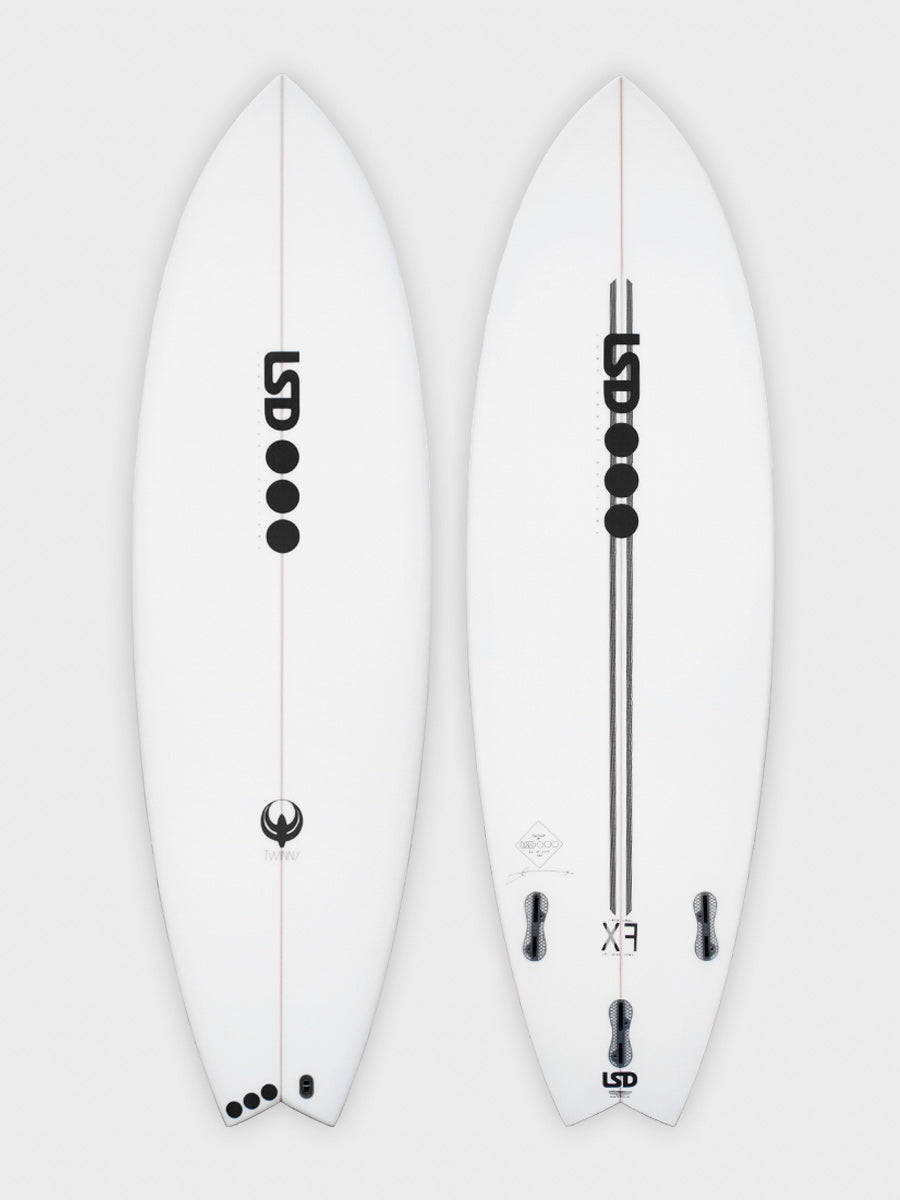 LSD Twinny XF Stringered Epoxy Tech was inspired by an original Ben Aipa Twin fin. Amazingly fun board for nearly all conditions. To be ordered 4 inches shorter, and 1 or 2 litres more than your standard shorty. Comes with a third stabiliser fin for the not so daring.